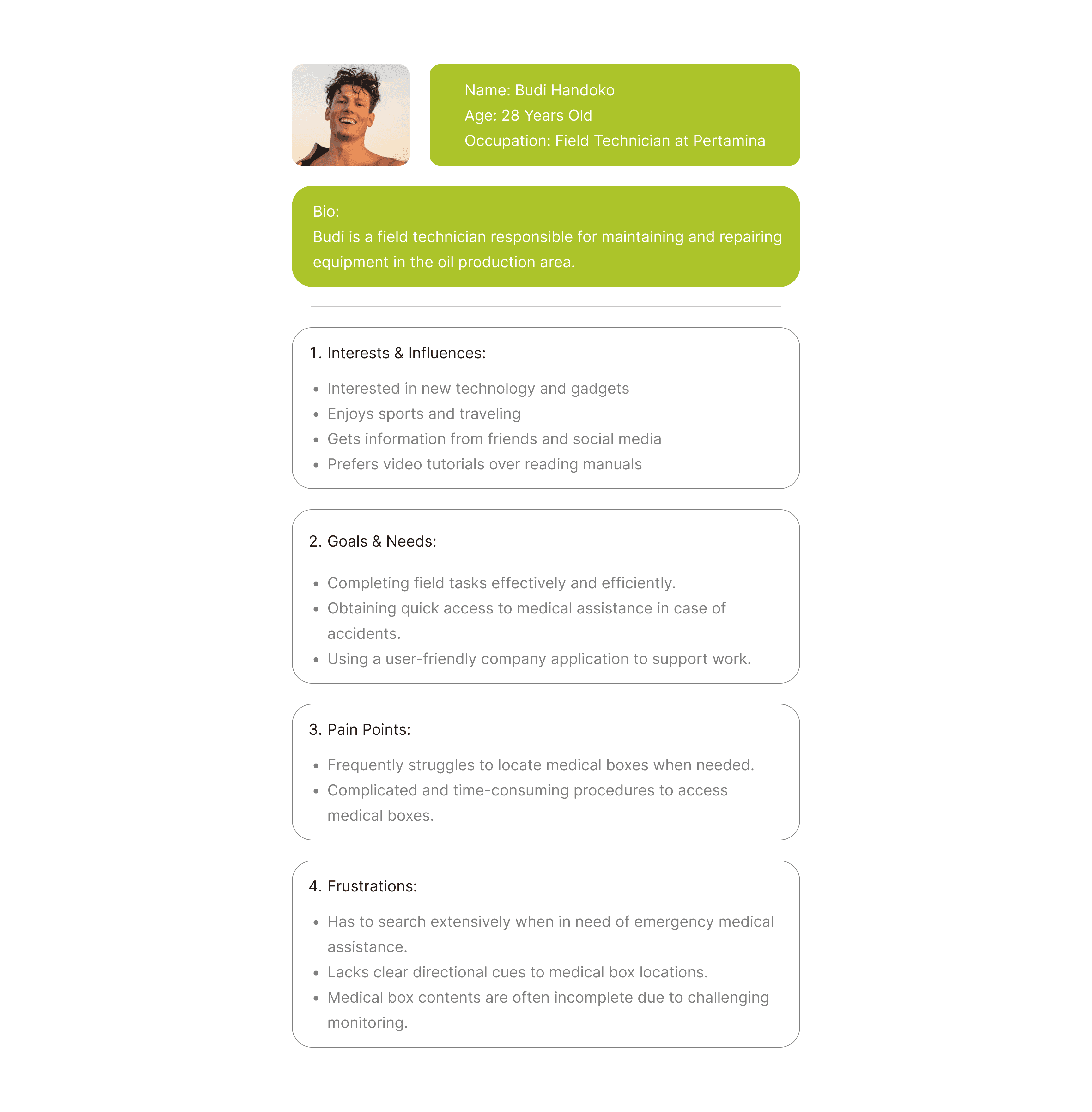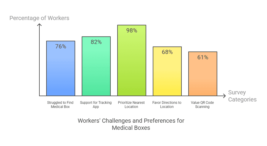 We conducted a study to understand the challenges for 50 respondents of Pertamina field workers face in locating medical boxes and their expectations for a tracking application.