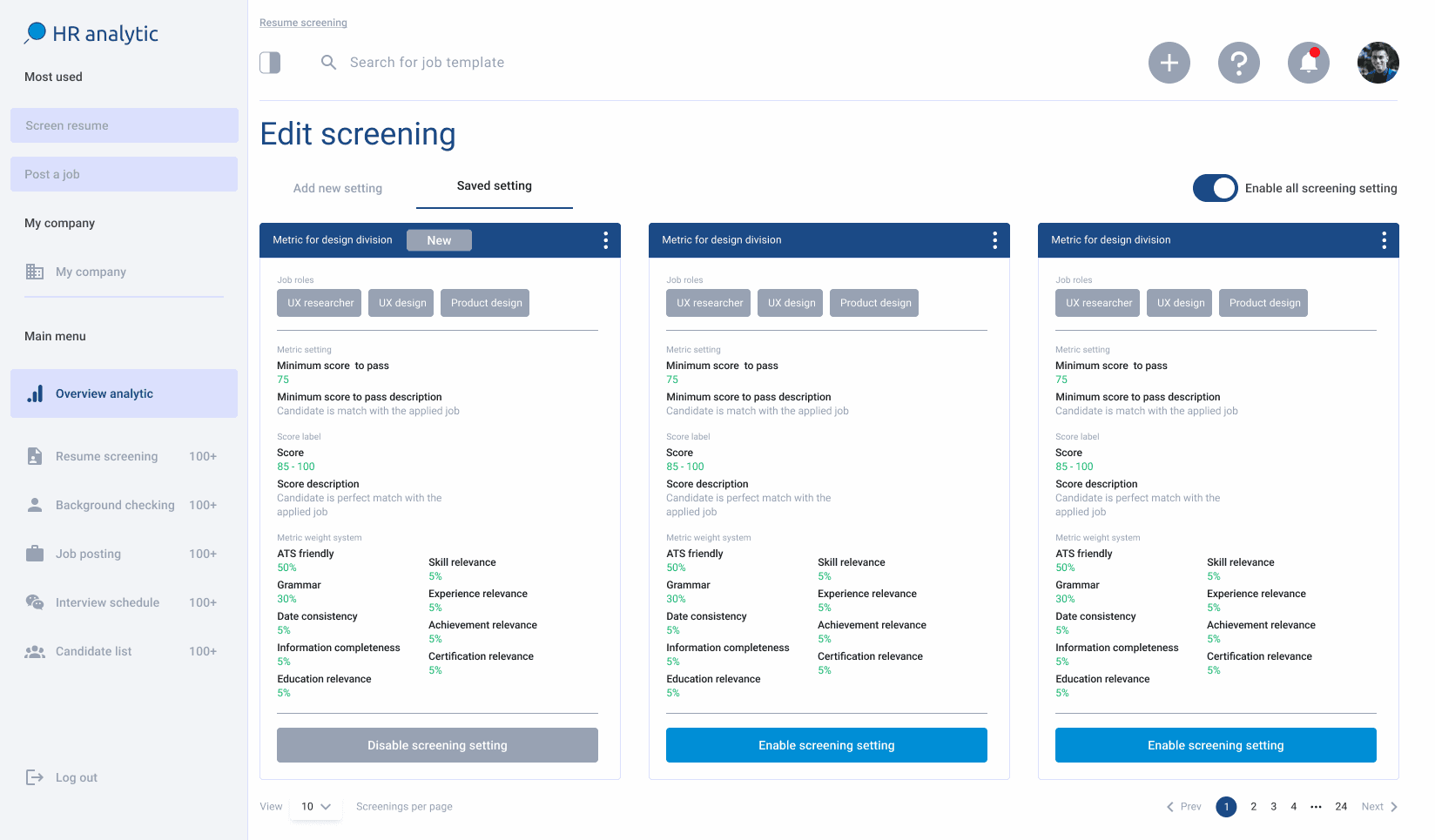 There is also a comprehensive and intuitive resume screening parameter customization menu, making it easy for users to understand its purpose immediately.