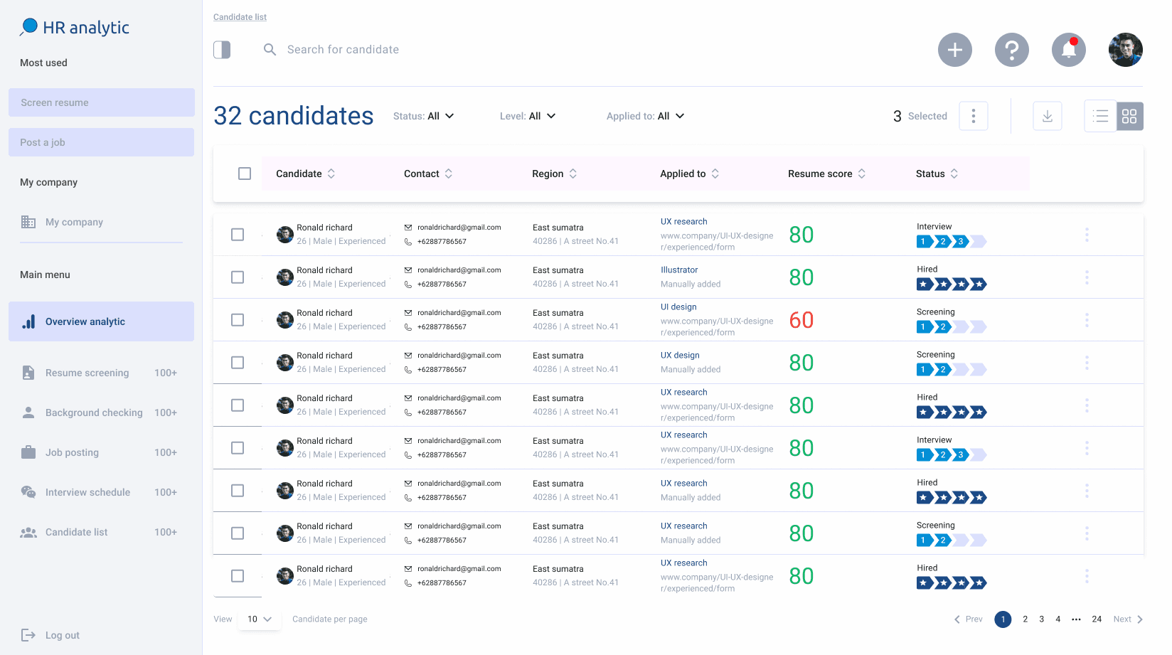 The candidate list functions as a database that stores all candidates who have passed resume screening and undergone background checks, making them ready to be selected by the user for the interview process or even directly hired.