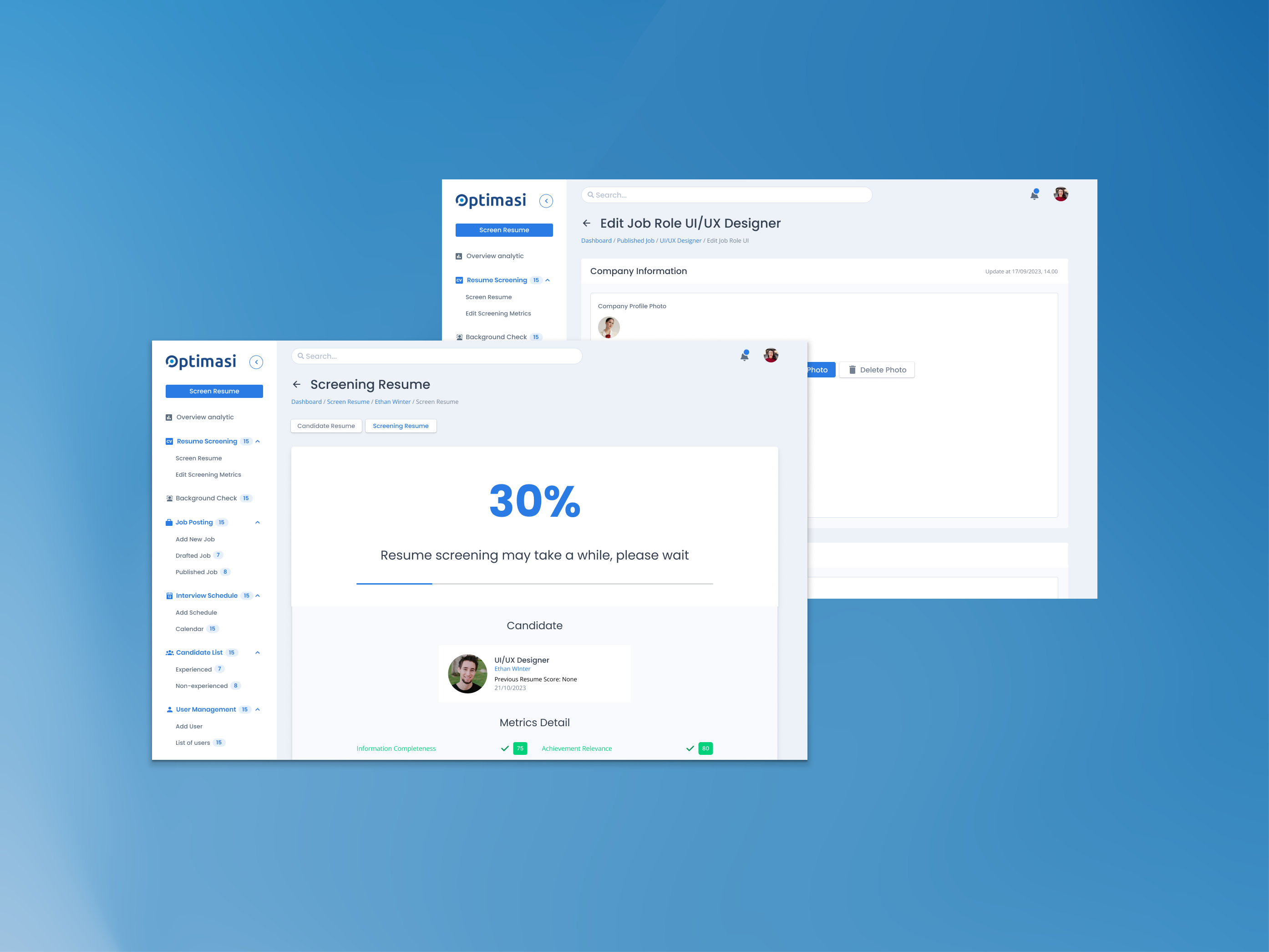 We at Optimasi.ai provide a comprehensive SaaS HRD dashboard. The SaaS HRD Dashboard is a recruitment platform designed to streamline the hiring process for HR teams. It addresses key challenges like managing high volumes of applications, skill mismatches, and candidate verification. This tool empowers HR professionals to efficiently identify top talent, reduce hiring costs, and avoid costly bad hires.